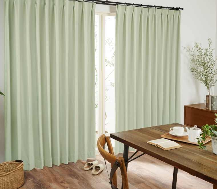 カーテンの仕上がりに対して約2倍の生地を使い、上部のヒダを3つ山で摘みます。高級感のあるエレガントスタイルにおすすめです。