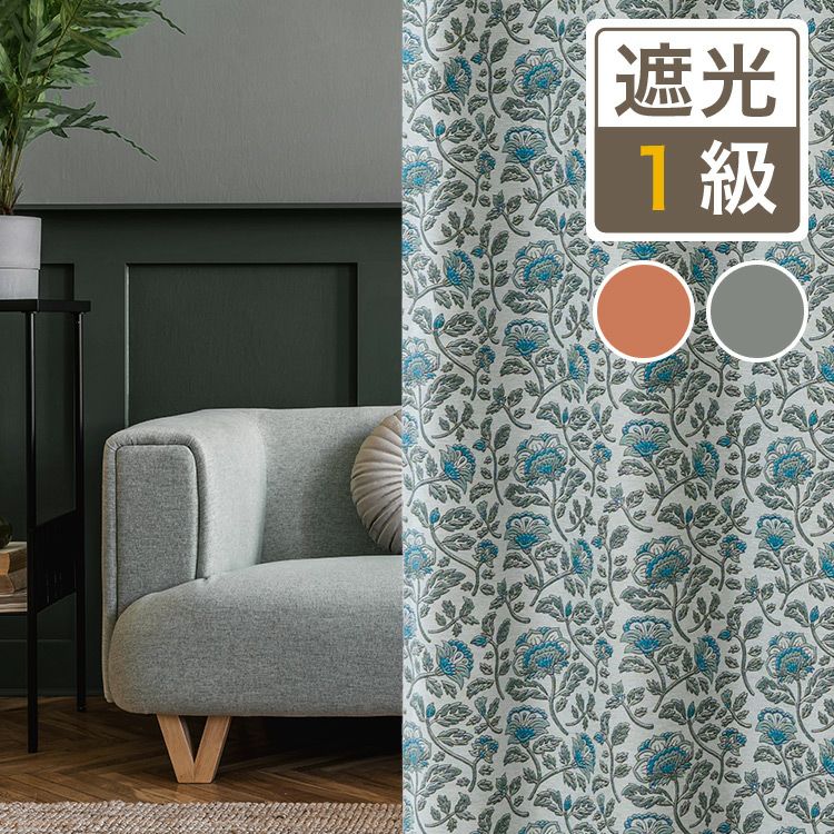 北欧風の素朴で温かみのある植物モチーフを手書き風で描いた大人の1級遮光カーテン ルトレ(D-1195)|遮光カーテン通販専門店|ふくろうのカーテン