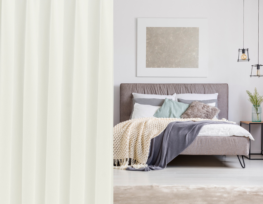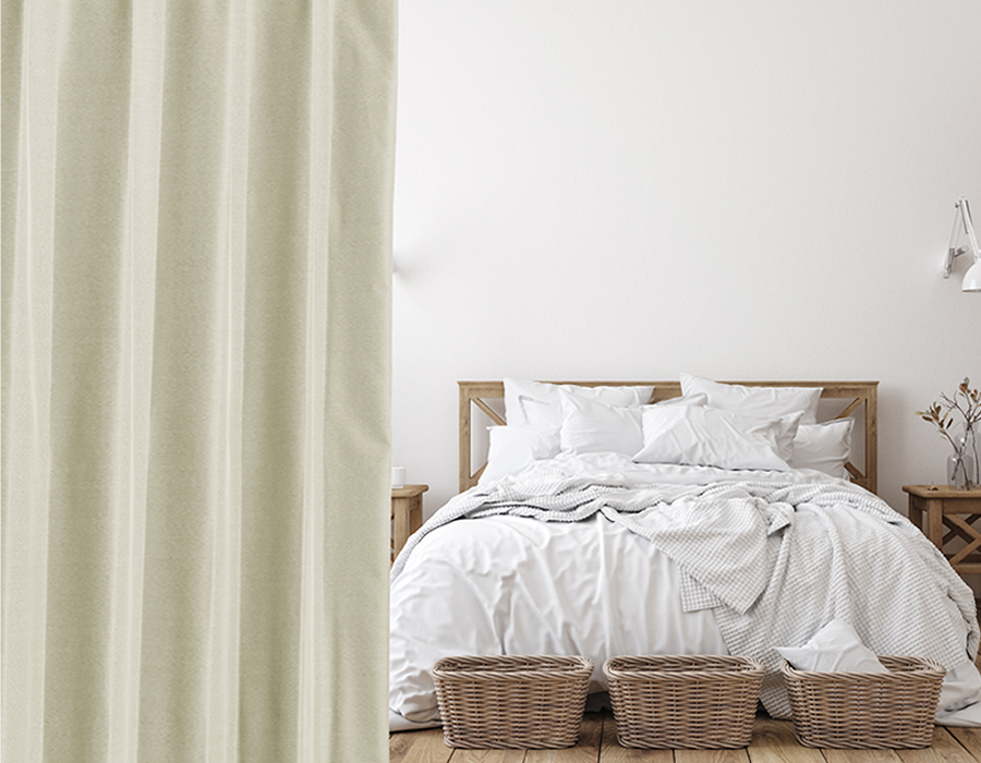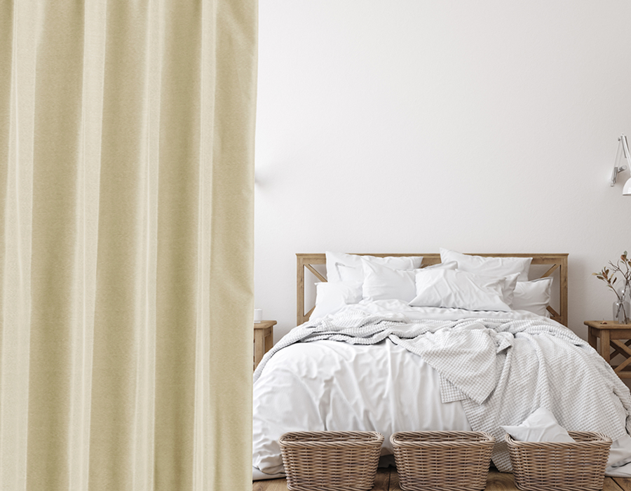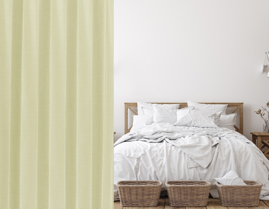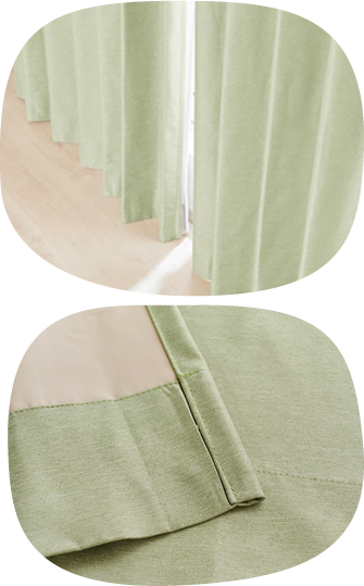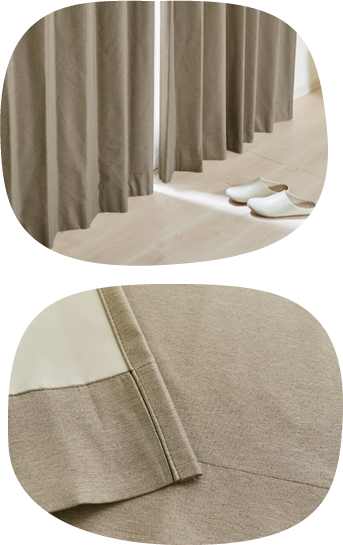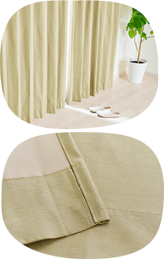カーテンの仕上がりに対して約1.5倍の生地を使い、上部のヒダを2つ山で摘みます。ベーシックなスタイルでスッキリと仕上がります。