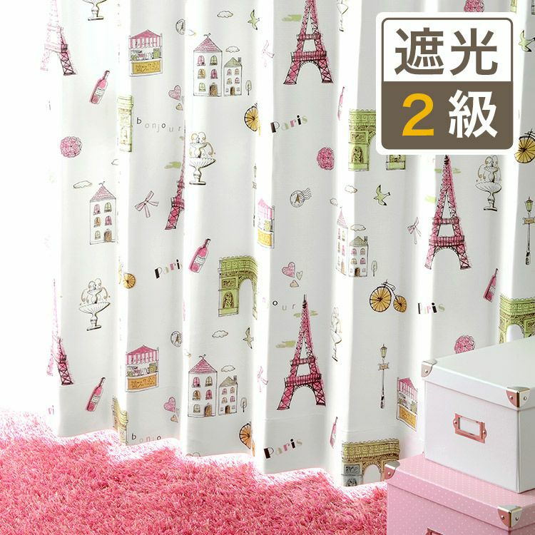 カーテン生地全面に描かれたパリのモチーフが可愛らしくお部屋を彩ります。