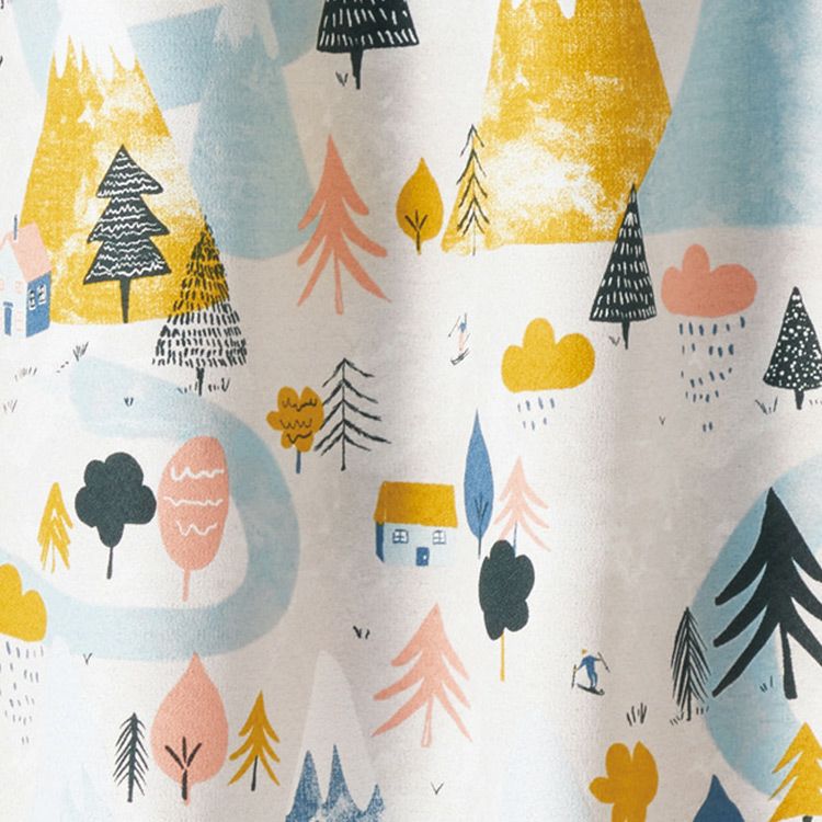 【3級遮光カーテン】雪山で暮らす人やイエティがかくれている楽しいデザイン ユキヤマ(D-1196)|遮光カーテン通販専門店|ふくろうのカーテン