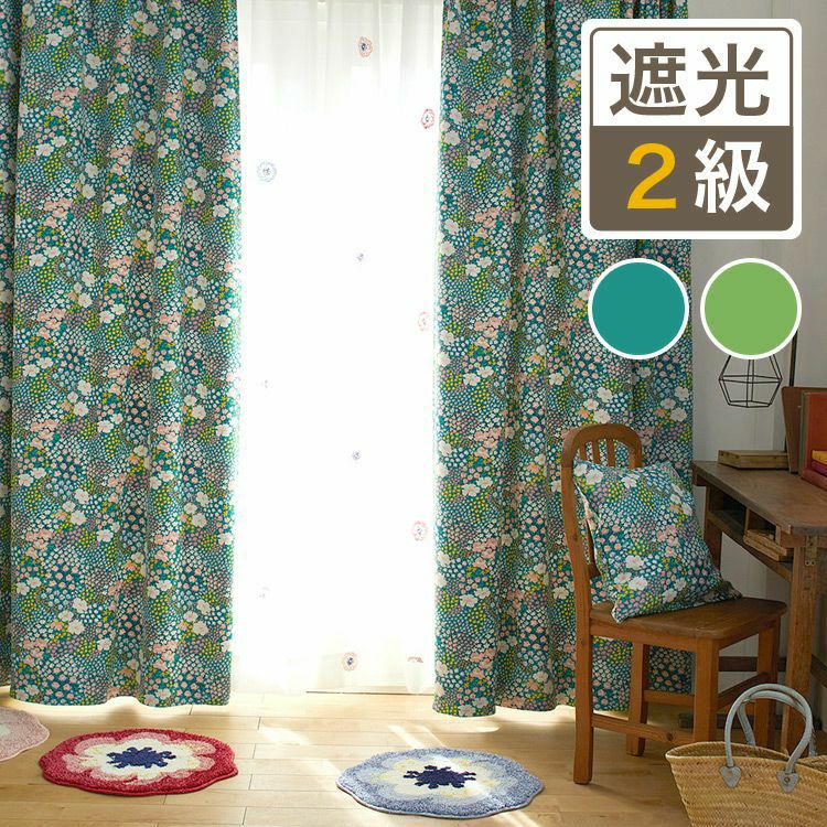 【2級遮光カーテン】お花畑のような北欧風花柄プリント オハナバタケ