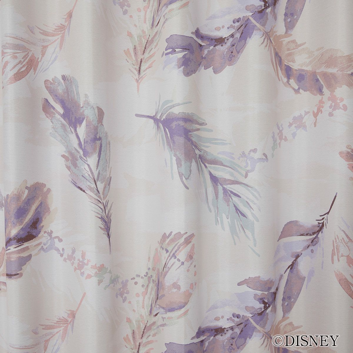 淡い色彩で描かれた羽根が印象的な、エレガントなドレープカーテン。さりげなくデザインされたディズニーキャラクターが、カーテン全面に舞う羽根の中を可愛く動き回る、おしゃれな1枚。