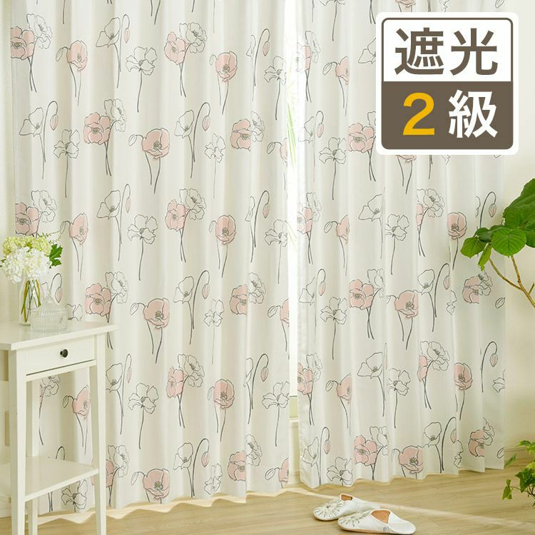 遮光2級のカーテンの人気の理由は生地の種類がとても豊富な点です。1枚仕立ての2級遮光カーテンは遮光生地特有の生地の黒ずみが抑えられたものが多く、プリントや染色の美しさが活かされた華やかな雰囲気です。