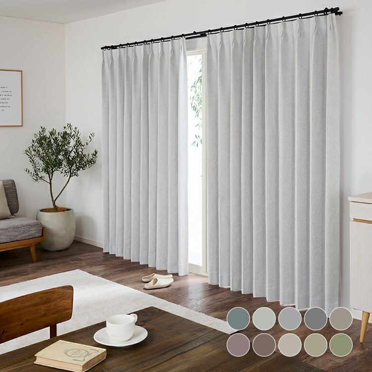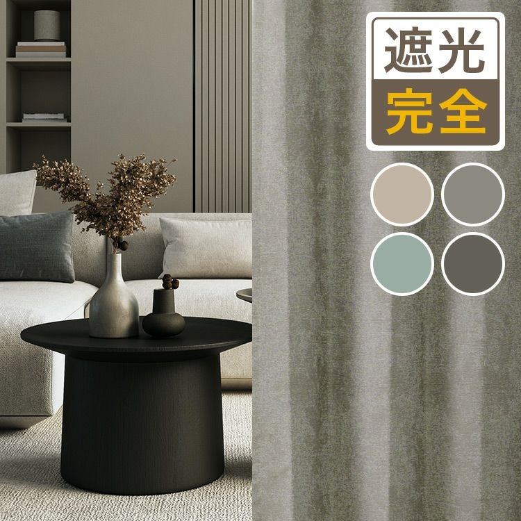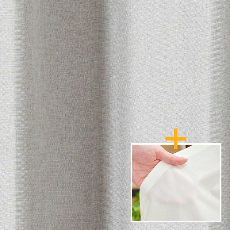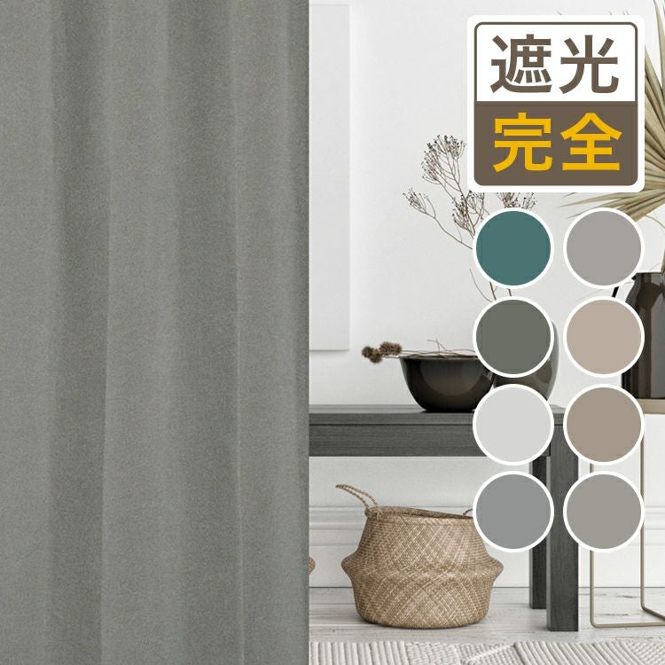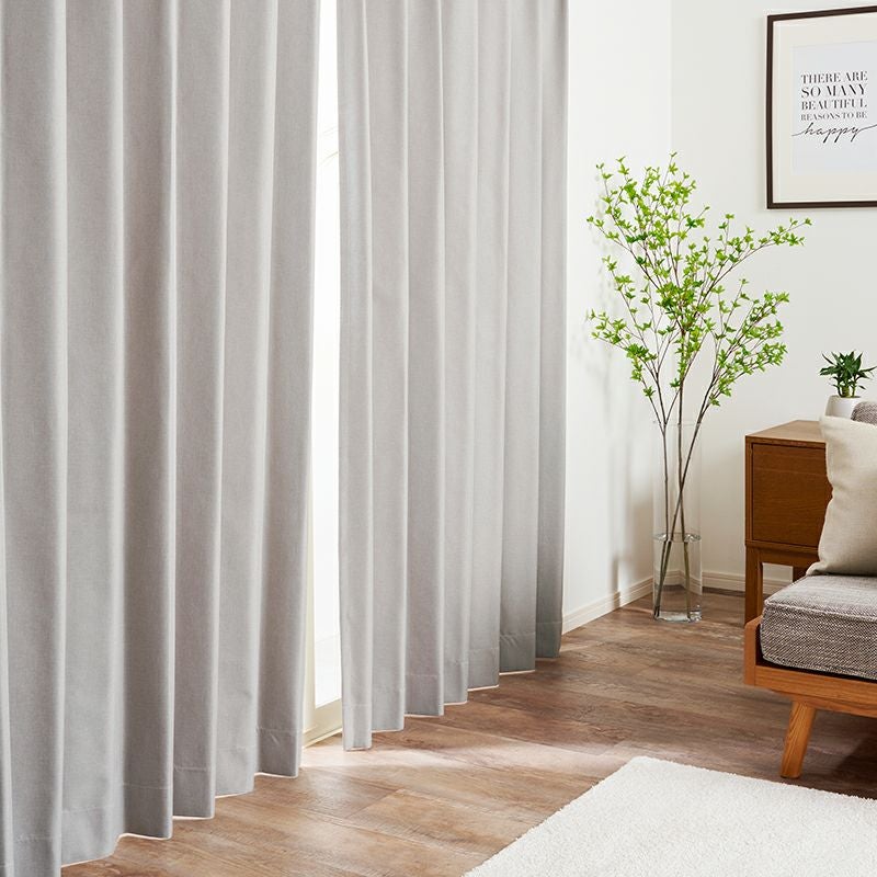 ナチュラルなインテリアに良く合う大人のグレイッシュカラーが魅力の完全遮光カーテン。 スマートフォンケースなどに使用されている特殊フィルムを挟み、遮光率100%の完全遮光を実現しました。