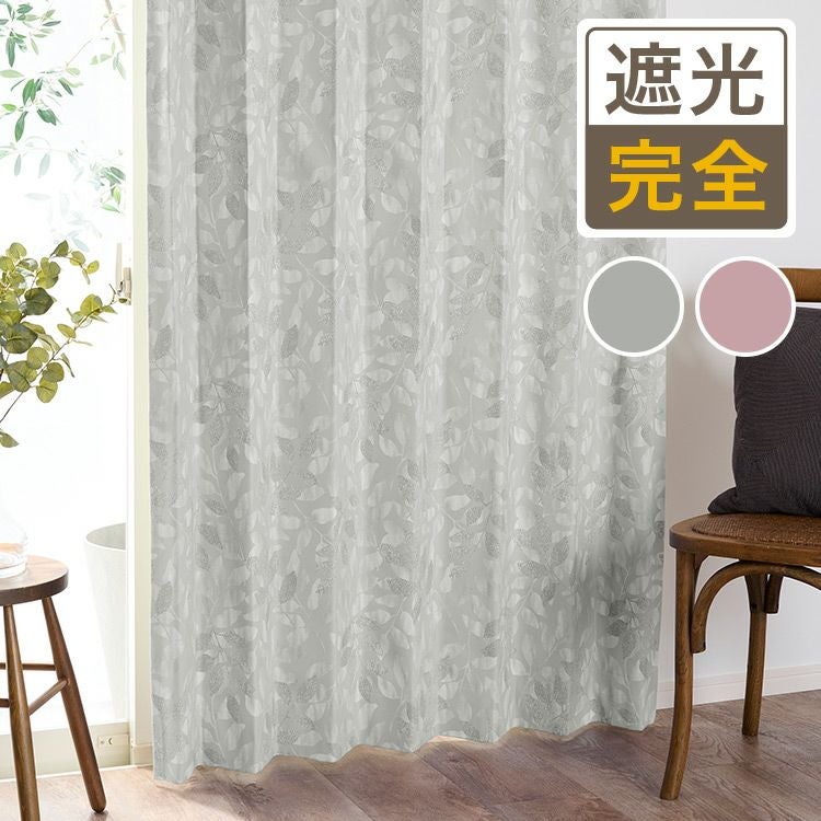 北欧テイストの優しいリーフ柄がおしゃれな完全遮光カーテン D-1162