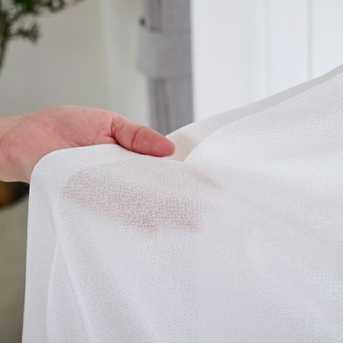 アクリルコーティング加工と同様の効果(遮熱・防音効果)があり、生地の本来の風合いに近い状態にできます。さらにアクリル樹脂コーティング加工に比べ、約30%の重量カットに成功。カーテンレールへの負担も心配もありません。