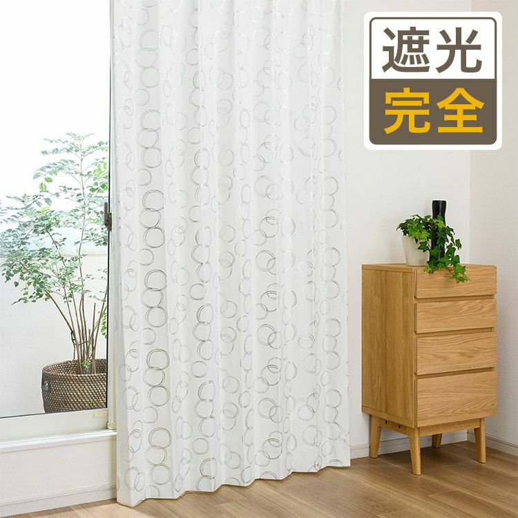 シルバーのサークル柄がおしゃれな遮光率100%の完全遮光カーテン 3320|遮光カーテン通販専門店|ふくろうのカーテン
