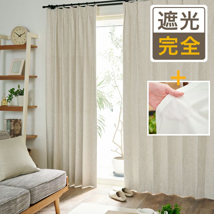 麻混のナチュラルな完全遮光カーテン(D-1152)のお得な高機能レースセット/1セット|遮光カーテン通販専門店|ふくろうのカーテン