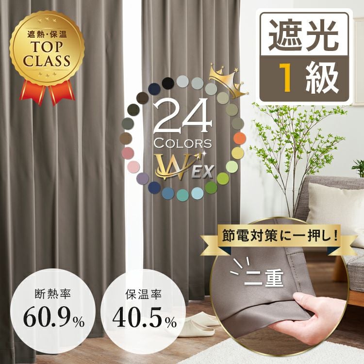 断熱効果率60%でNO.1|24色 遮熱保温・防音効果を高めた1級遮光防炎二重カーテン D-113W|遮光カーテン通販専門店|ふくろうのカーテン