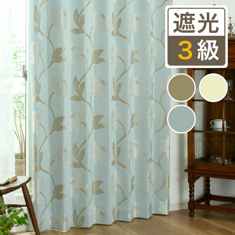 大きなマグノリアの花がエレガントな裏地付き3級遮光カーテン CH13|遮光カーテン通販専門店|ふくろうのカーテン