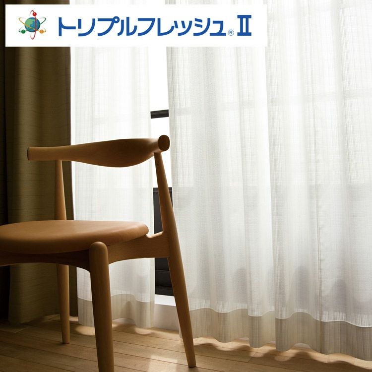 消臭加工技術「トリプルフレッシュII」を施した防炎シアーレースカーテンです。