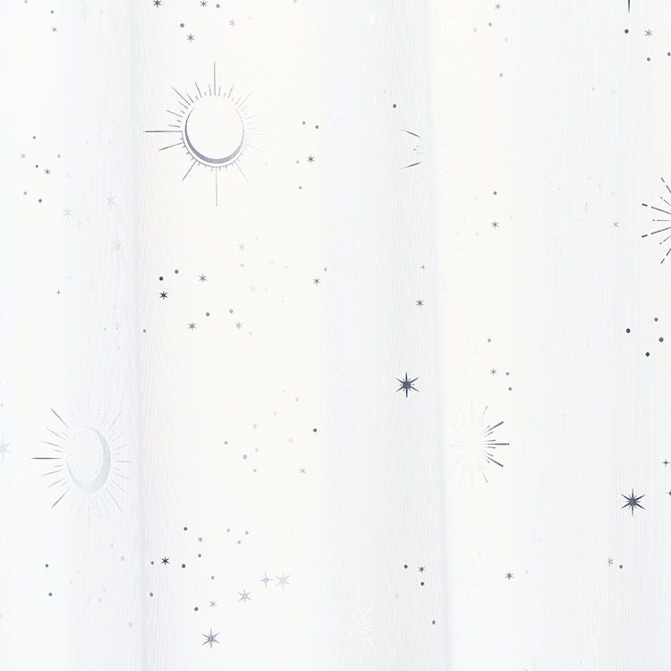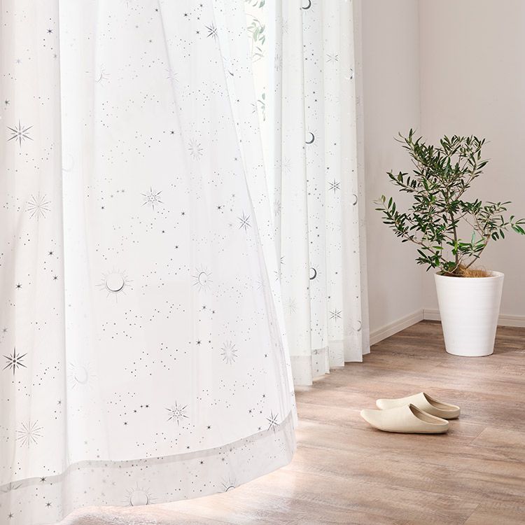キラキラ輝く星と月を箔プリントで表現した遮像・UVカットレースカーテン L-975|遮光カーテン通販専門店|ふくろうのカーテン