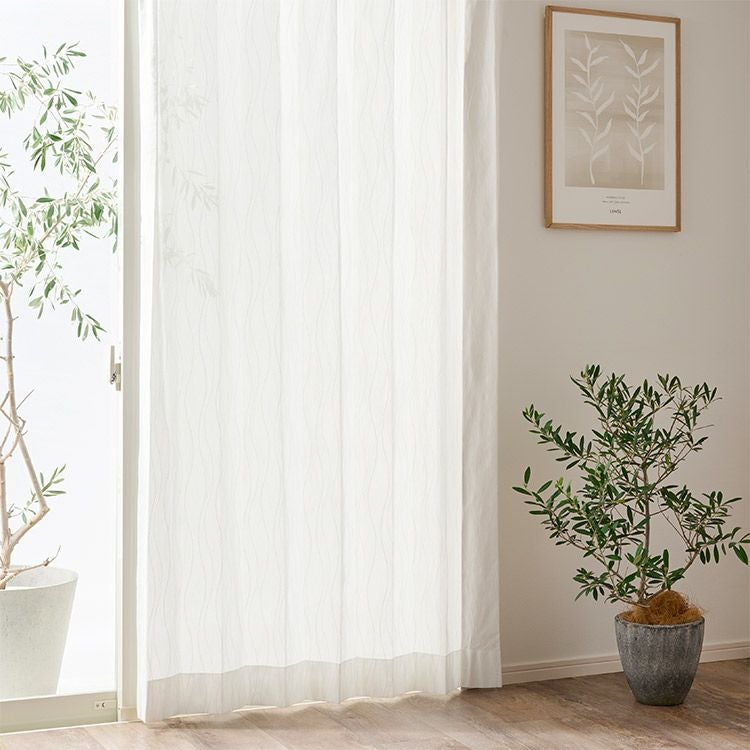 タテに流れるウェーブ柄がスタイリッシュモダンな雰囲気のおしゃれな遮熱レースカーテン 3015|遮光カーテン通販専門店|ふくろうのカーテン