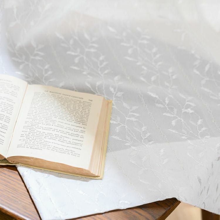 ストライプ状に伸びるリーフ柄が美しい遮熱・ミラーレースカーテン L-3009|遮光カーテン通販専門店|ふくろうのカーテン