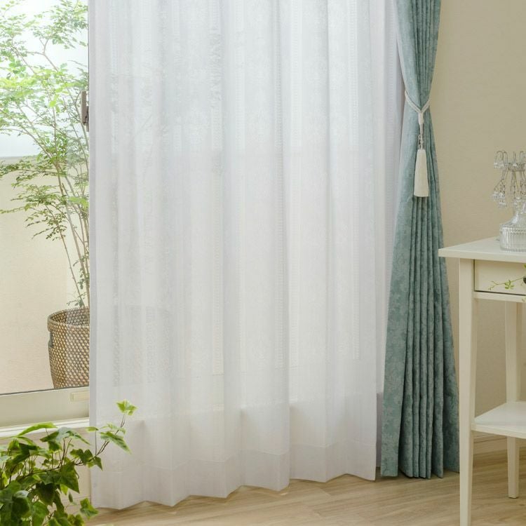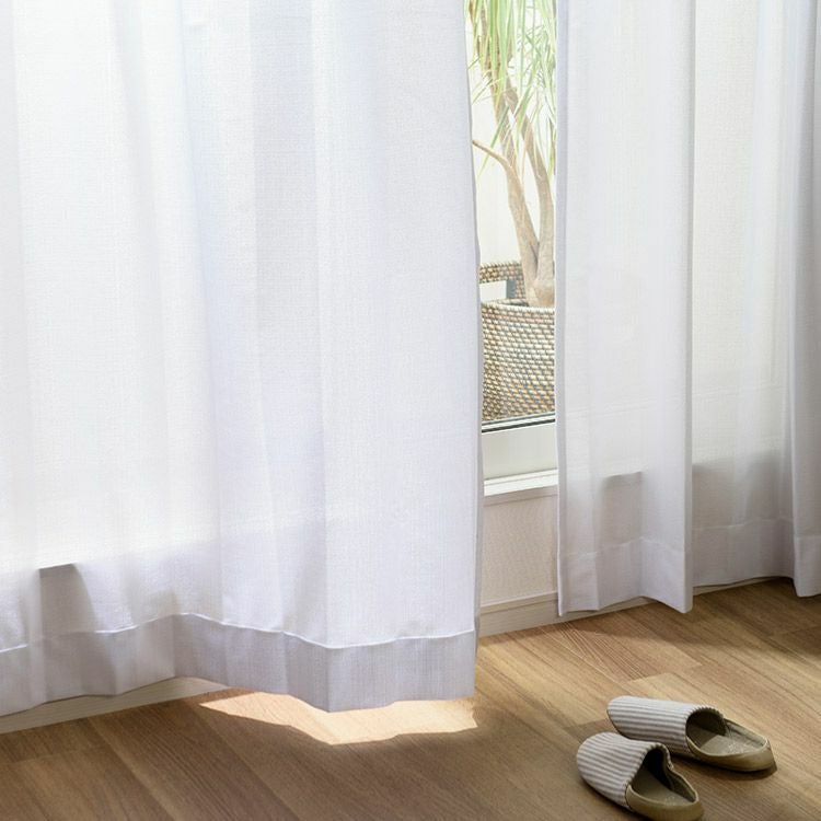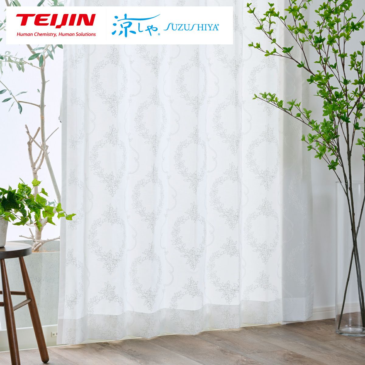 高い遮熱効果のあるサラクール糸を使用したUVカットレースカーテンです。特殊糸を用いることで、外からの視線や太陽光、紫外線を遮りながら、適度な透け感も楽しめるレースカーテンです。いろんないろんなインテリアとも合わせやすいシンプルなレースカーテンです。