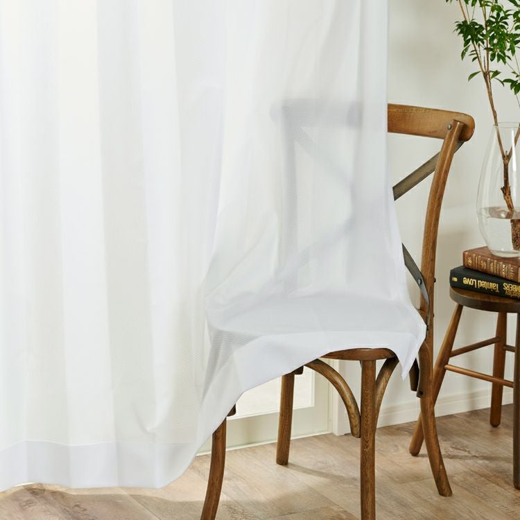 高い遮熱効果のあるサラクール糸を使用したUVカットレースカーテンです。特殊糸を用いることで、外からの視線や太陽光、紫外線を遮りながら、適度な透け感も楽しめるレースカーテンです。いろんないろんなインテリアとも合わせやすいシンプルなレースカーテンです。