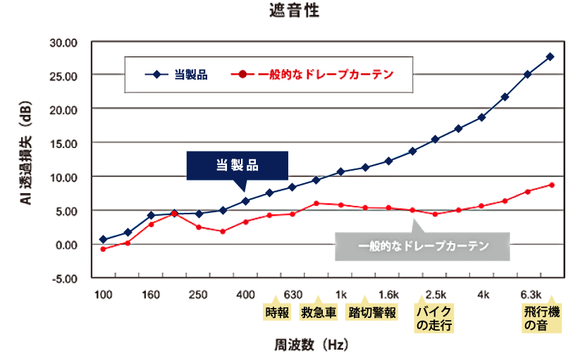 高音域の音に高い遮音効果を発揮