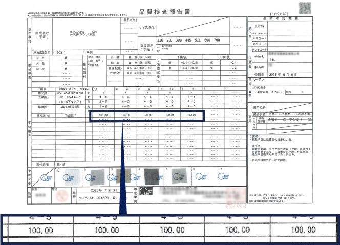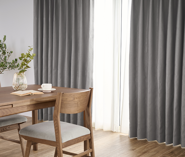 専門の検査機関で遮光率100.00%の基準をクリアした完全遮光カーテンです。朝の陽射しを遮るのはもちろん、外からは中の様子が見えずプライバシーを保護します。