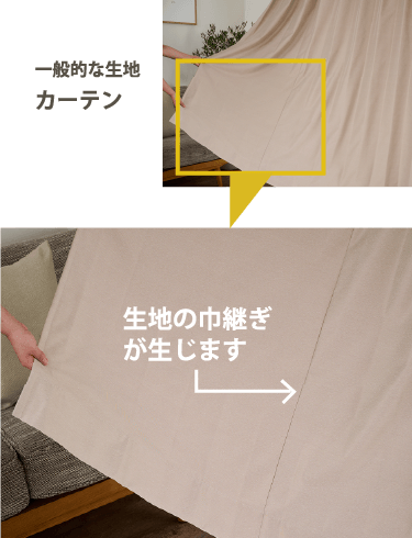 生地幅が広いため、大きな広窓でも「生地の継ぎ目(巾継ぎ)のない1枚仕立てでお作りできます。ウェーブが連続する美しいシルエットになるのはもちろん、継ぎ目の縫い穴からの光漏れを心配をする必要もありません。