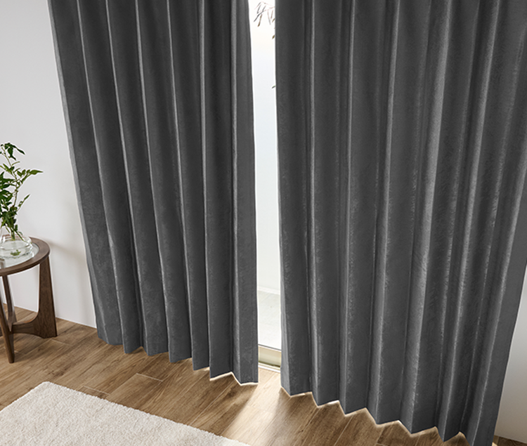控えめな光沢感、スタイリッシュな奥行きを生む生地の風合い。単調な無地のカーテンにはないザラザラの質感が、重厚感と高級感を引き立てます。
