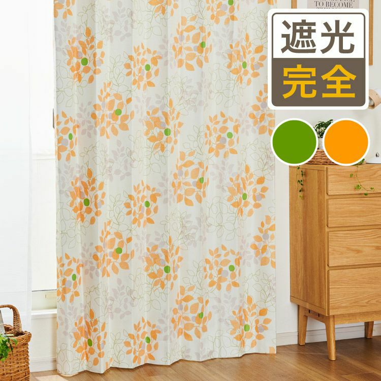【生地サンプル】シルエットのリーフと明るい色のリーフが重なり合いぬくもりを感じさせる完全1級遮光カーテン 3315/1枚|遮光カーテン通販専門店|ふくろうのカーテン