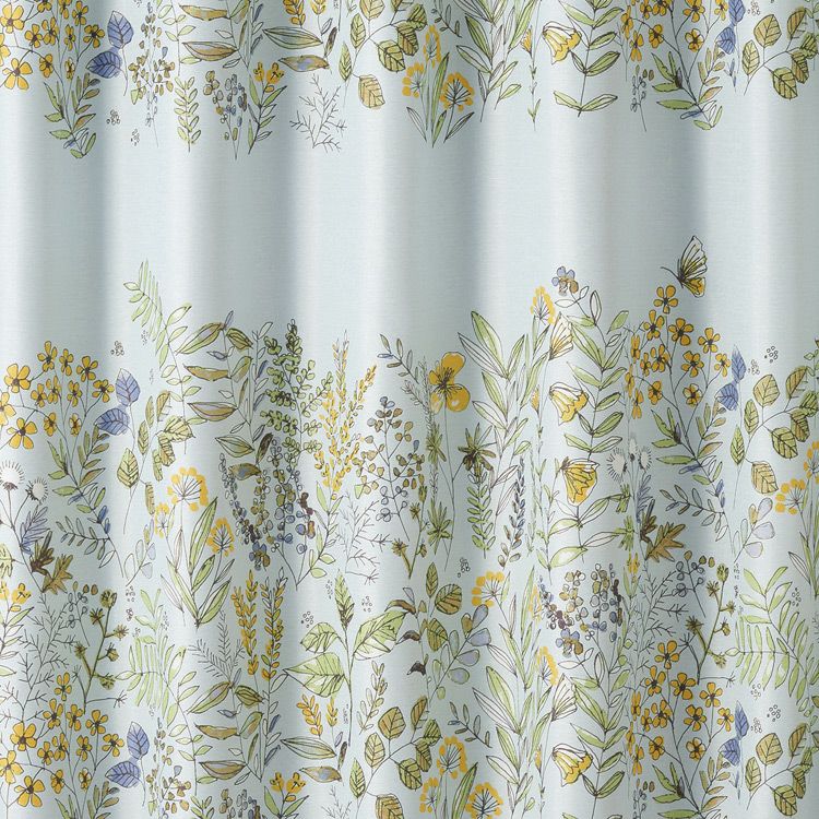 【生地サンプル】【2級遮光カーテン】道ばたに咲く植物や蝶を大胆に構成したボーダー柄 ミチクサ(D-1196)|遮光カーテン通販専門店|ふくろうのカーテン
