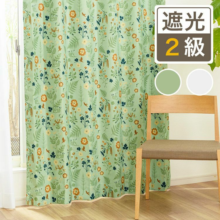 【生地サンプル】北欧風草花柄がプリントされた2級遮光カーテン LEAF11078/1枚|遮光カーテン通販専門店|ふくろうのカーテン
