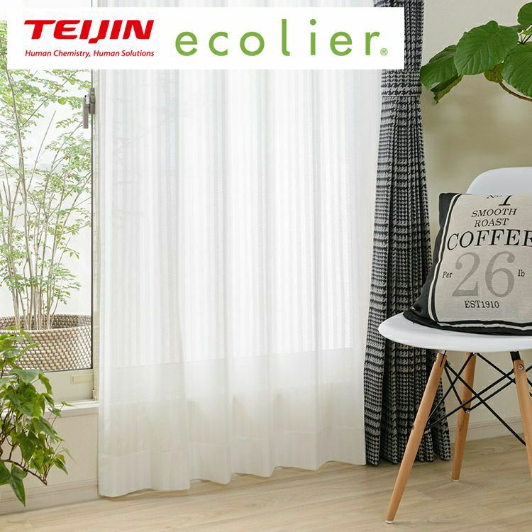 【生地サンプル】帝人フロンティアの「エコリエ(R)」を使用したほど良い太さのストライプが合わせやすい遮熱・UVカットレースカーテン L-1524/1枚|遮光カーテン通販専門店|ふくろうのカーテン