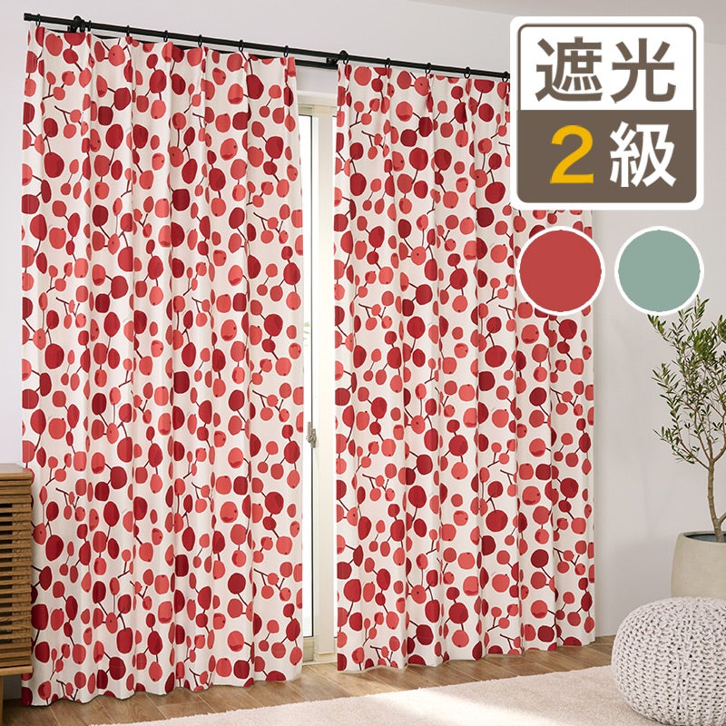 【生地サンプル】北欧テイストの木の実モチーフがかわいい2級遮光カーテン 大きな木の実(D-8009)|遮光カーテン通販専門店|ふくろうのカーテン