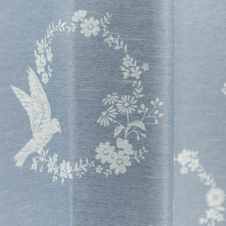 【生地サンプル】グレイッシュカラーに大人かわいいリースと小鳥の柄の2級遮光カーテン D-1108/1枚