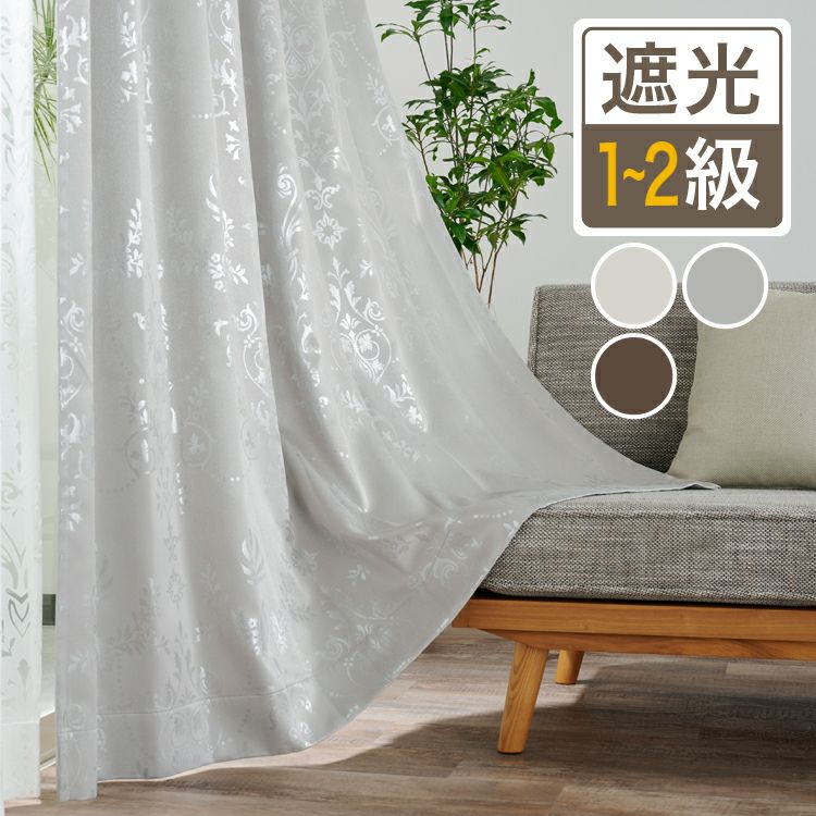 【生地サンプル】豪華なシャンデリア風のダマスク柄が光沢糸により美しく輝く2級遮光カーテン D-0307/1枚
