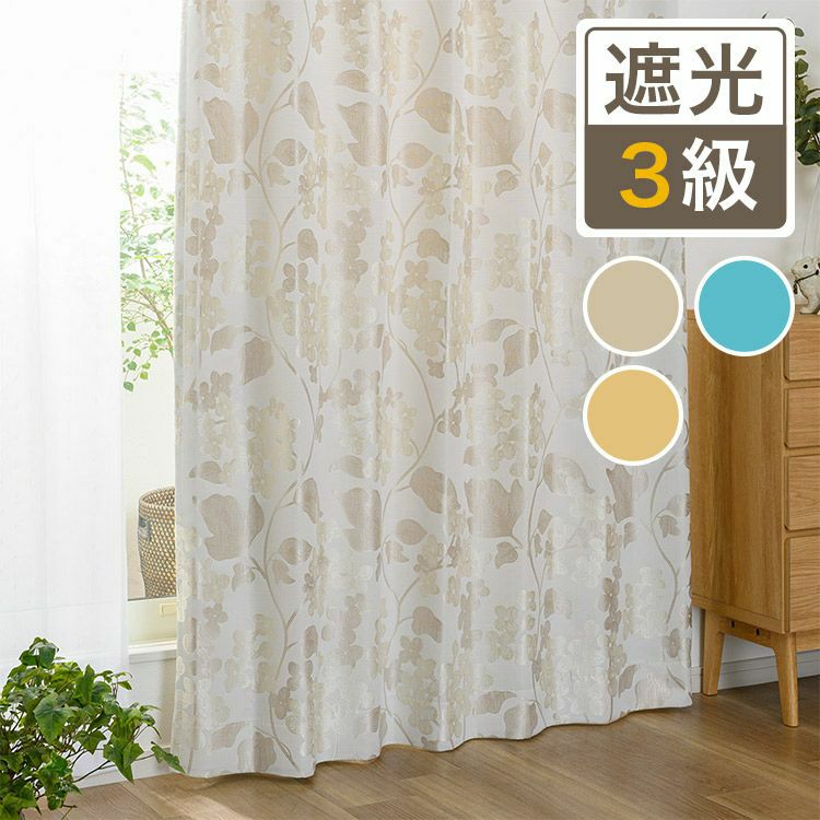【生地サンプル】大きな花のデザインが光沢糸で華やかに織り上げられた裏地付き3級遮光カーテン CH19/1枚