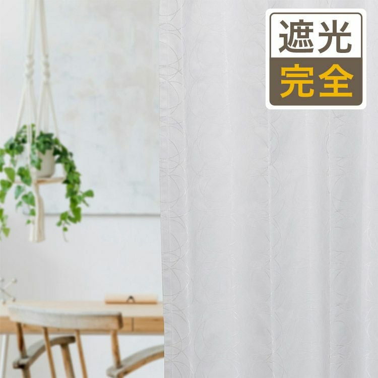 【生地サンプル】ストライプの地模様の生地にサークル柄がおしゃれな完全遮光カーテン EC08/1枚