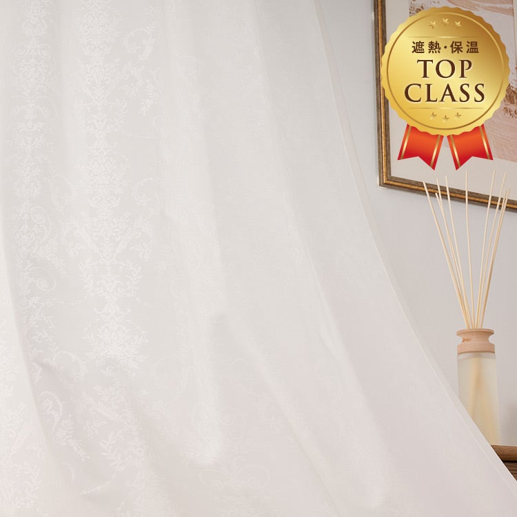 【生地サンプル】 帝人フロンティア「涼しや(R)」を使用!エレガントなリーフ柄の遮熱・遮像レースカーテン L-1253