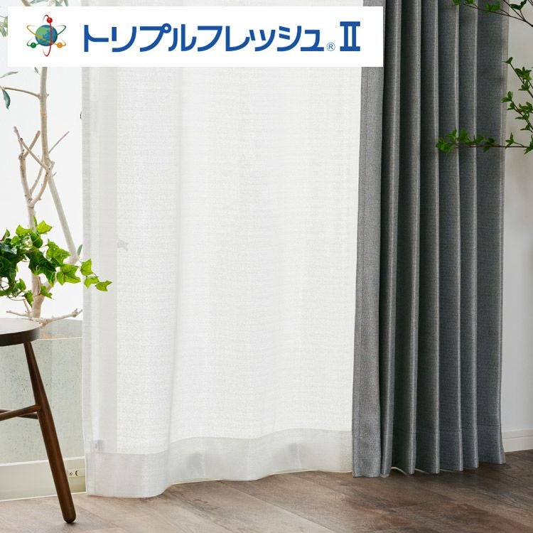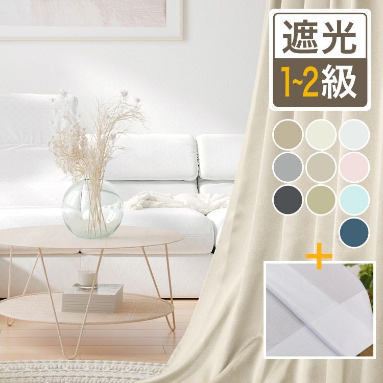 【生地サンプル】綿風の柔らかな質感の完全遮光カーテン(D-302)のお得な高機能レースセット/1セット