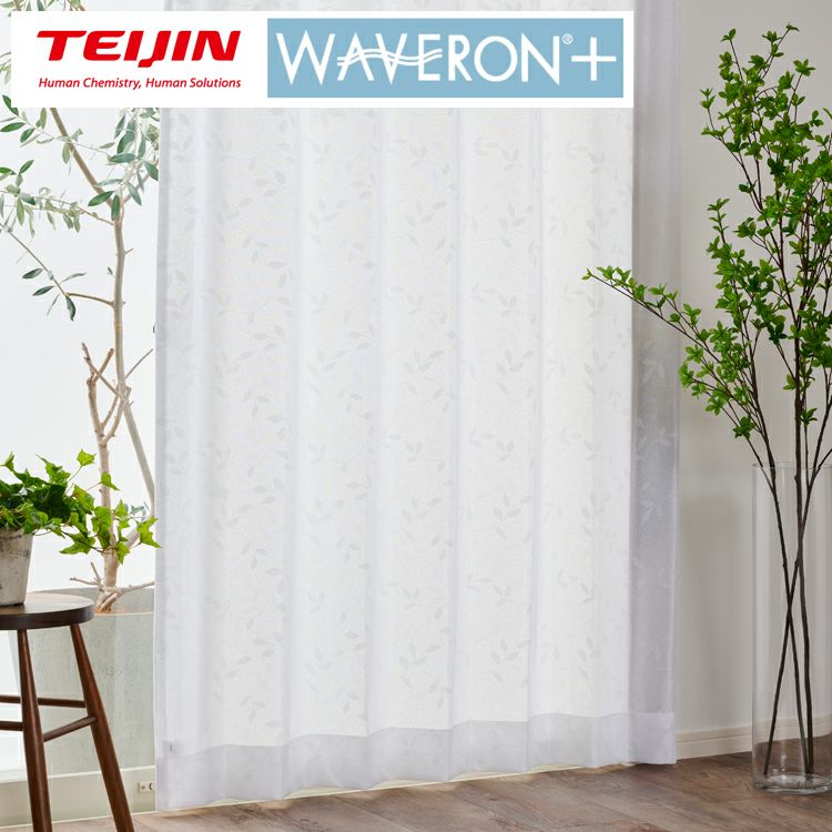 【生地サンプル】帝人フロンティアの「ウェーブロンプラス(R)」使用したリーフ柄の遮像・採光レースカーテン L-1718/1枚