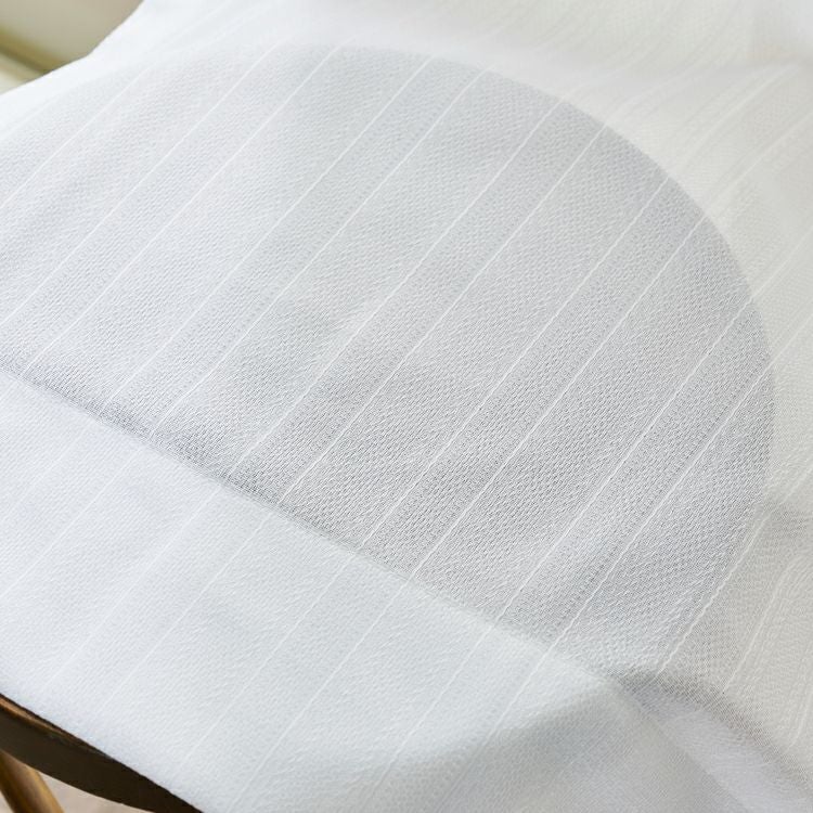 【生地サンプル】消臭加工技術「トリプルフレッシュII」を施したランダムな縦線がおしゃれな防炎ミラーレース D4517