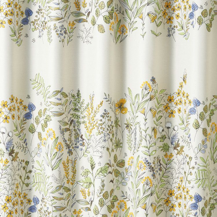 【生地サンプル】【2級遮光カーテン】道ばたに咲く植物や蝶を大胆に構成したボーダー柄 ミチクサ(D-1196)