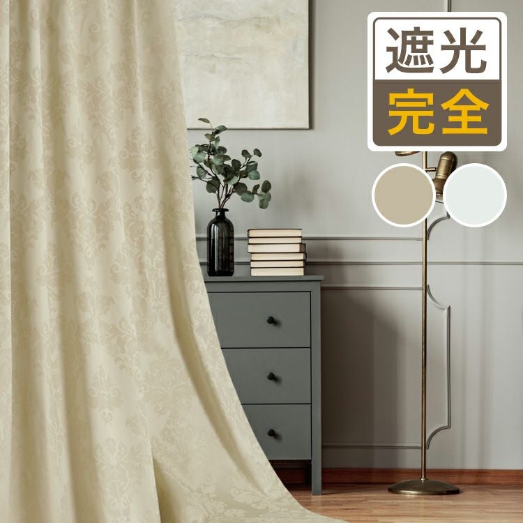 【生地サンプル】ダマスク柄ジャガード織の裏面にコーティングを施した遮光率100%、完全遮光カーテン NL12007/1枚