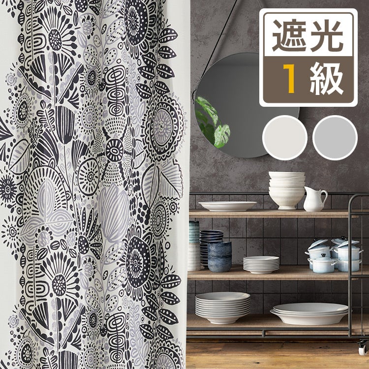 【生地サンプル】【1級遮光カーテン】北欧モダンな花柄プリント カルナ(D-1195)