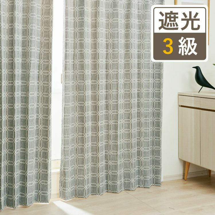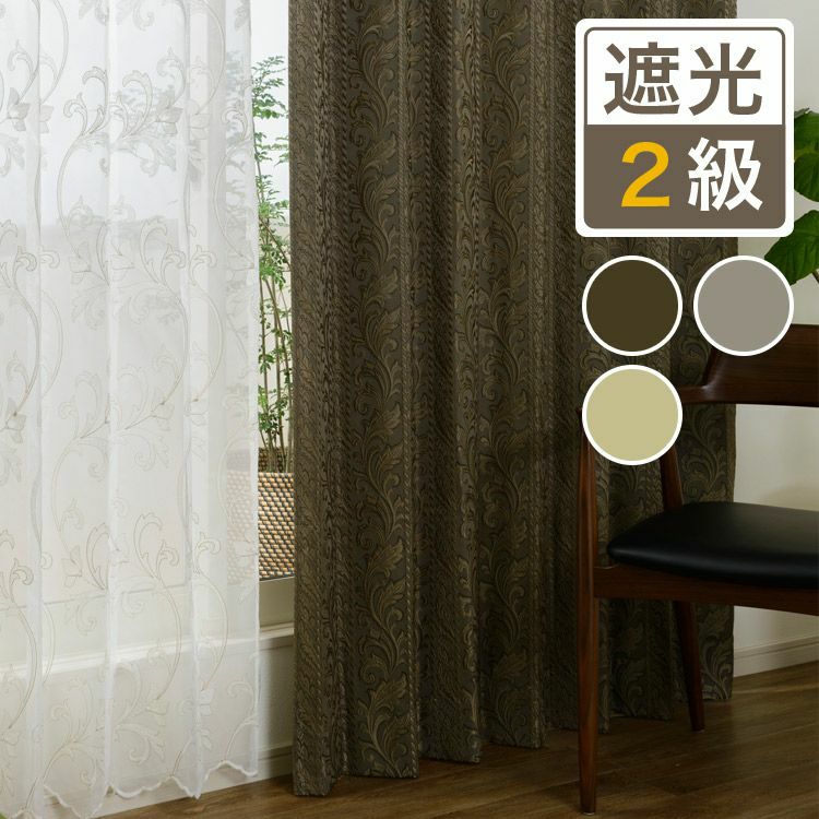 【生地サンプル】大きなつる柄と単色使いで使いやすい裏地付き2級遮光カーテン アンドレー