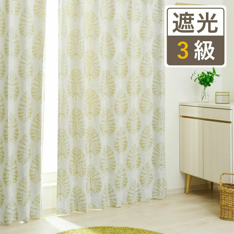 【生地サンプル】モダンなシダ柄がおしゃれな遮光裏地付き2級遮光カーテン パーム /1枚