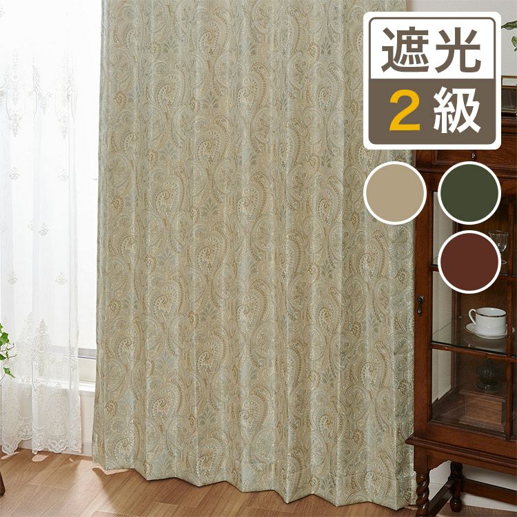 【生地サンプル】ペイズリー柄がおしゃれな裏地付き2級遮光カーテン アンジェラ