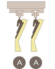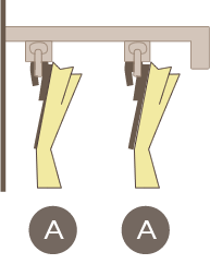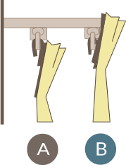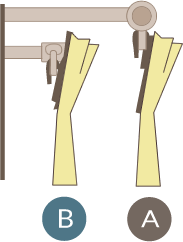 室内側のドレープカーテンはA、B両方のフックが使用可能です。