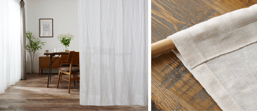 上部を筒縫いで仕上げて突っ張り棒やカーテンポールに通して使用するカーテン。