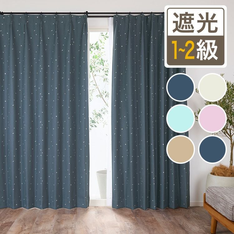 【生地サンプル】6色 子供部屋に!きらめく星柄がかわいい1・2級遮光カーテン ロケット2(D-1195)